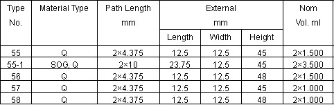 Tandem or Divided Fluorimeter Cells Type 55,56,57 and 58