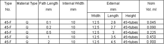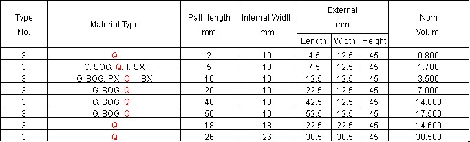 have four polished windows and a full interior width suitable for use in most instruments.The pathlengths available are from 1 to 50mm