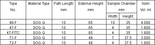 Fluorimeter Cells,Type`s 46,47,71 and 72F flow through