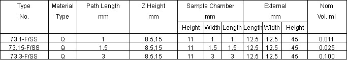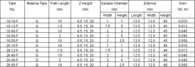 Type 16,26 Fluorimeter Cells Sub-Micro