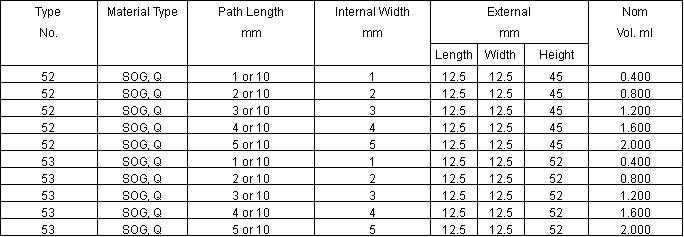 Dual Path Length or Fluorimeter Cells Types 52 and 53