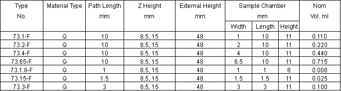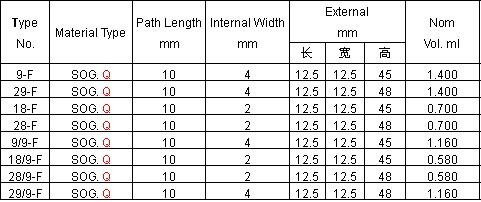 Type 9 and 29-Fluorimeter Cells,Semi-micro and Types 18 and 28-F Micro