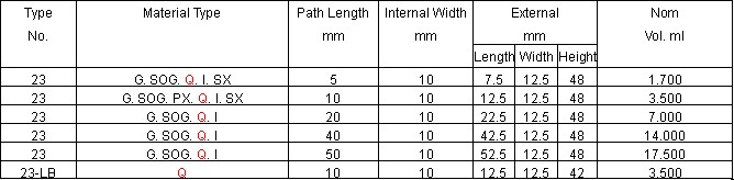 Standard Fluorimeter Cells Types 3 and 23