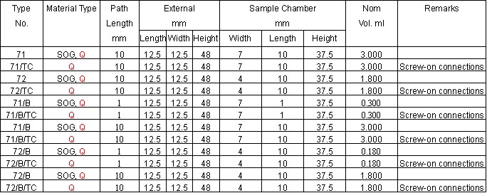 Type 72 Semi-micro Flow Cells