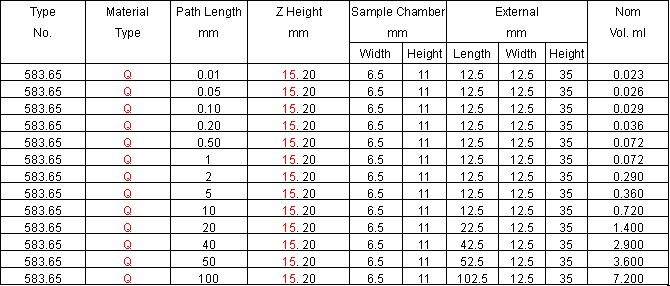 Type 584.4 Flow Cells Dissolution,Short Path Length,Long aperture