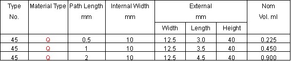 Type 45 Flow Cells,in line or microscope analysis