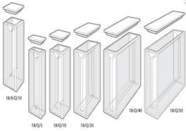 方形池可應用于大多數紫外/可見區域的常規分析。最常規的類型的池子,均為兩面透光并且符合國際標準尺寸。10mm光程尺寸可以適用于絕大多數使用方形池的儀器。光程從1mm至100mm可選。您需查閱您儀器的使用手冊來確定是否需要一個用于更長光路比色池的池支架。