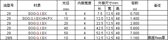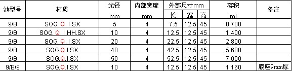 黑體池,備有非密封蓋半微量方形池 Type 9B