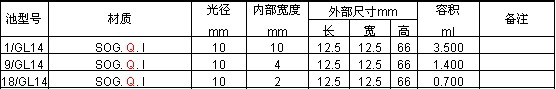 帶有螺紋蓋(帶或不帶隔膜)的標準方形池 Type 1、9、18/GL14