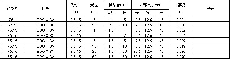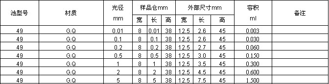Type 75.1,75.15亞微量圓形狹縫流通池