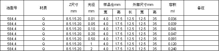 Type 583.4系列流通池,半微量,中等狹縫(M6連接頭)