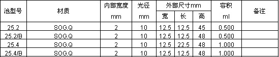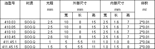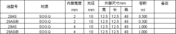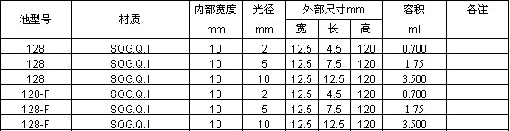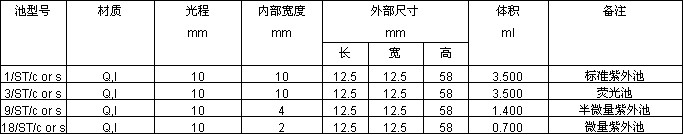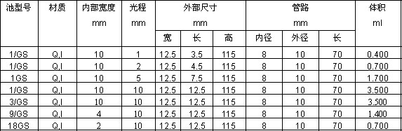 帶有石英-耐熱玻璃分級密封柱方形池,Type 1,3,9,18