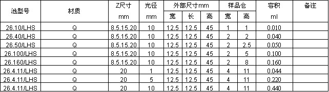 亞微量(LHS)比色池,Type 26LHS
