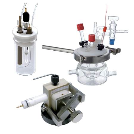 各電化學(xué)工作站附屬品實(shí)物圖一覽 電化學(xué)工作站的附屬品有很多,包括:分析池配件組、腐蝕池配件組、光譜電化學(xué)配件組、電池配件組、石英晶體分析配件組、燃料電池配件組、玻璃器皿配件組、電極配件組、法拉第籠配件組、連接組件以及旋轉(zhuǎn)盤電極配件組等,其中: