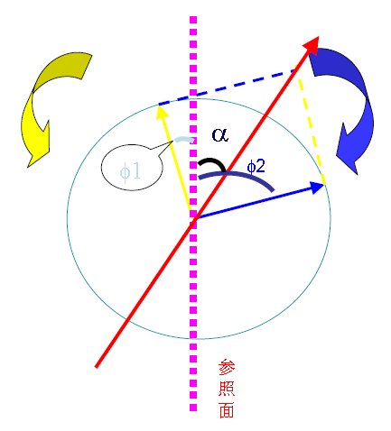 振幅相等、角頻率相等、相位不同,左右圓偏振光合成線性偏振光