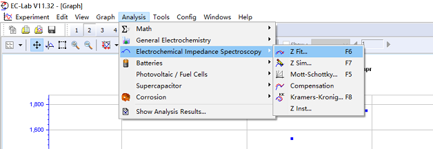 打開EIS數(shù)據(jù)后,選擇Analysis→Electrochemical Impedance Spectroscopy→Z Fit... 彈出Z Fit頁面,包含Inputs、Equivalent circuit selection、Fit、Results四部分。