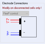 如果VMP3系列電化學(xué)工作站已經(jīng)連接了某個大電流儀器,那么Electrode Connections下面會出現(xiàn)相應(yīng)的特殊的電極連接方式。比如,電化學(xué)工作站連接了Flex P系列的儀器,那么Electrode Connections下面會出現(xiàn)“FlexP control”的選項,如下圖: