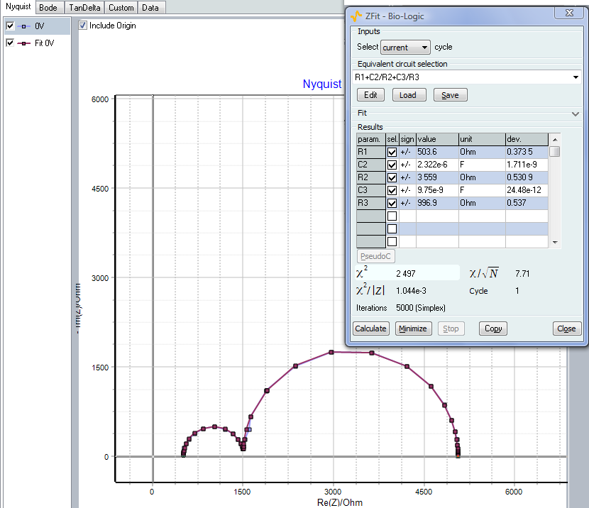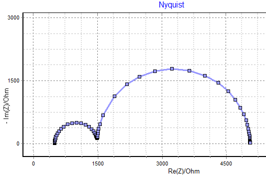 如儀器功能正常將會(huì)得到雙圓弧的Nyquist圖結(jié)果:
