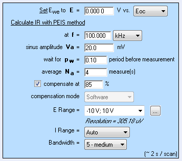 Bio-Logic VMP-300系列儀器支持選擇通過軟件或硬件模式進行補償,通常保持默認通過軟件模式補償即可。