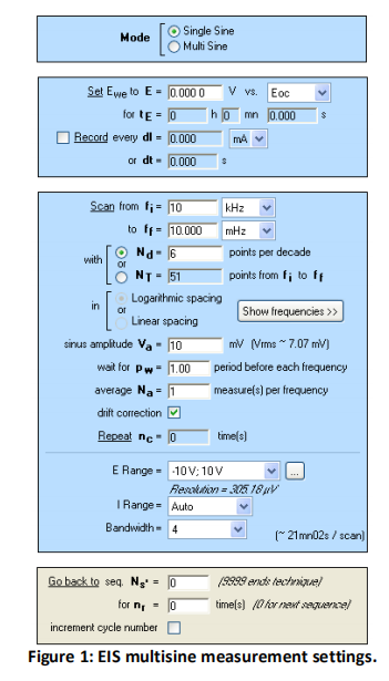 Multisine eis測量模式測試是一個避免某些電化學系統隨時間變化漂移的交流阻抗測量好方法。取決與測量體系,multisine eis測量模式可以在保證與single sine模式同樣精度的情況下,比原先的測量速度快3至4倍。