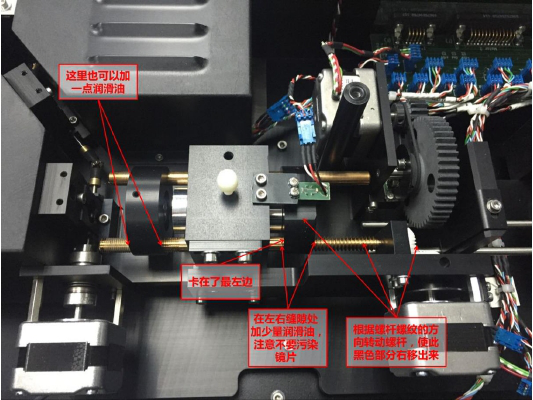2)Doublet:Doublet 為用于光路調整的光學元件。在運動結合部位補加潤滑油。潤滑油可以用棉棒沾取,涂在螺桿和光桿上少量。