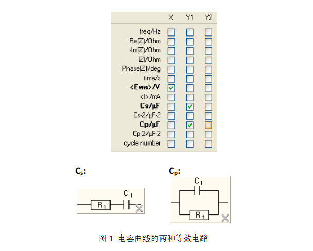 根據預想的模型電路,計算兩種類型的電容,Cs或Cp。電容Cs對應于R+C(串聯)電路的電容,Cp對應于R/C(并聯)電路的電容(圖1)。