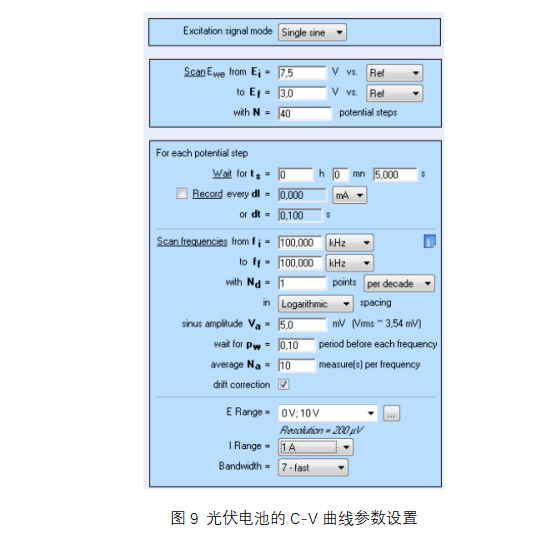 使用配備超低電流選項的SP-200或SP-300和EC Lab?軟件進行研究。對于這兩個系統(即varia電容器和光伏電池),采用標準的雙電極連接進行了研究。