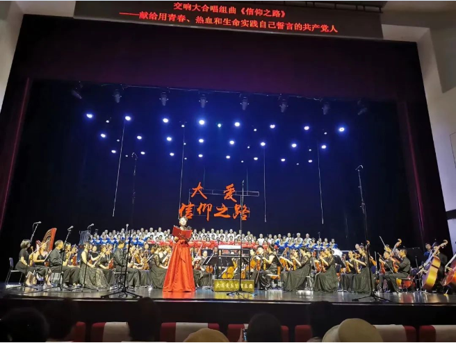 大連愛樂管弦樂團《大愛·信仰之路》交響組歌于2022年7月28日19點在大連國際會議中心大劇院隆重舉行。交響組歌《大愛·信仰之路》是作曲家鄭冰為建黨百年慶典而作的大型合唱作品,作品包括序曲《共產黨宣言》《忠魂頌》《沁園春·雪》《江姐遺書》《人民英雄紀念碑碑文》《我是中國人民的兒子》、尾聲《信仰之路》等共計14個樂章?!洞髳邸ば叛鲋贰费莩鐾瑫r錄制唱片和視盤,此舉是大連乃至全國首部非職業樂團與合唱團錄制的唱片。