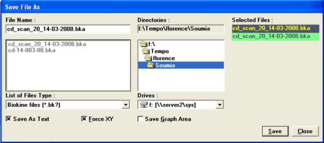 3.保存數據文件。選擇主界面的File菜單下的Save As,出現圖4界面。選擇要保存文件的文件夾位置,給文件命名,勾選Save As Text和force XY,然后點擊Save按鈕,文件保存到指定的文件夾中。此文件可用記事本程序打開。